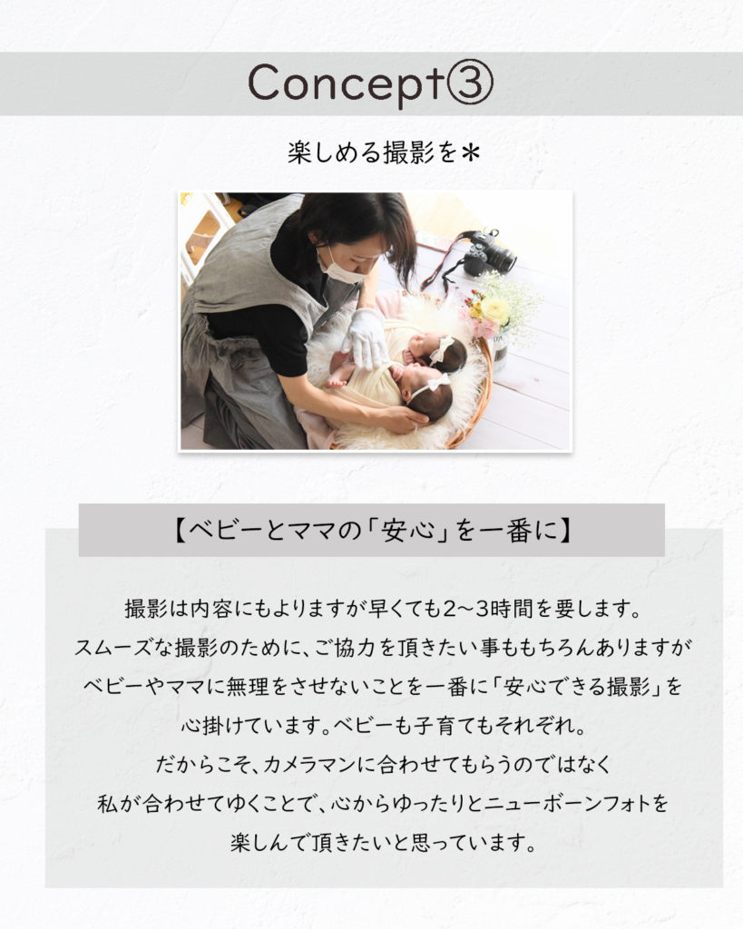 ・赤ちゃんに負担が少ないお撮影であること